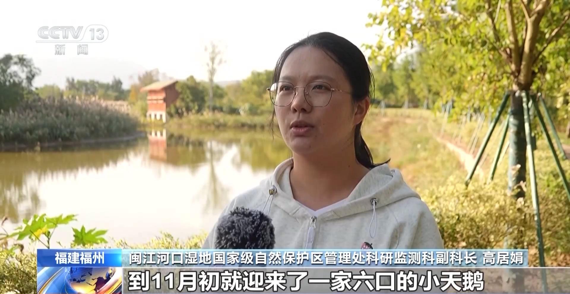 闽江河口湿地国家级自然保护区管理处科研监测科副科长 高居娟:今年的越冬季,我们最早是在10月29日有监测到一只“探路”的小天鹅,到11月初就迎来了一家六口的小天鹅,从那之后小天鹅的数量快速增长,一周之内可以增加几十只甚至上百只。最新的数据,监测到小天鹅的数量已经达到了980只,远高于往年同期200只的数量。