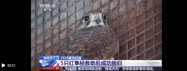 这段时间,在福建泉州晋江市,当地林业部门,接连救助了5只国家二级保护动物红隼。在工作人员的精心照料下,这5只红隼恢复良好。这两天,工作人员为它们佩戴了卫星定位装置,并成功放飞。