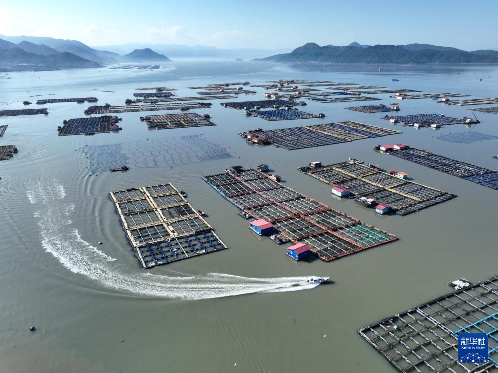 船只行驶在福建省宁德市三都澳海域大黄鱼养殖区(2024年12月2日摄,无人机照片)。