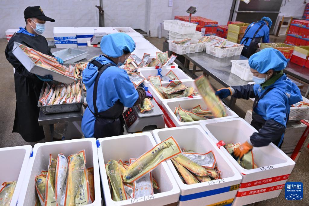11月28日,福建省宁德市霞浦县一家水产企业在加工大黄鱼产品。