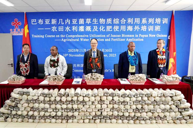 东南网11月30日讯(本网记者 林先昌 通讯员 林良辉)30日,由商务部主办、福建农林大学承办的巴布亚新几内亚(简称"巴新")菌草生物质综合利用系列培训——农田水利灌溉及化肥使用海外培训班,在经过21天的精彩授课与交流后,顺利落下帷幕。结业仪式在中国援巴新菌草旱稻技术项目永久性示范基地举行,现场气氛热烈,情谊融融。