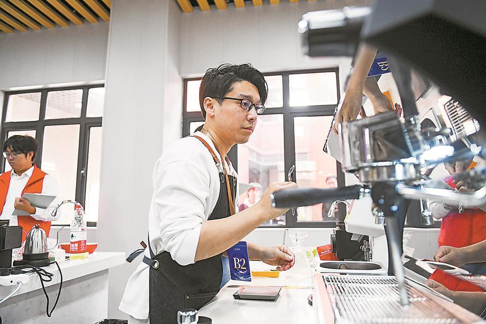 凭借精湛的技艺和独特的创意,台湾青年郭屹凡斩获了咖啡师赛项第一名。郭屹凡是一名“90后”青年,他在福州创业近10年,一手创立了“拎咖啡”品牌,事业越做越大。“品牌名中的‘拎’和英文link(连接)谐音,寓意着连接两岸情缘。我会继续用心做好每一杯咖啡,让咖啡连接起两岸同胞的情感与味蕾。”他说。