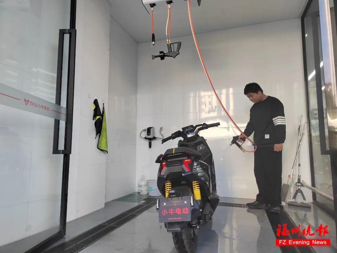 在位于象山隧道的小牛电动车门店,记者看到,很多顾客骑车前来,然后将电动车停进一个小房间,从屋顶拉下清洗设备洗车。“这是我们为车主准备的自助洗车室,配备了高压水枪、泡沫喷枪、吸尘器等设备,而且是免费的。”店员说。而让记者意外的是,即使是其他品牌的电动车,也可以免费来洗车。此外,商家也为顾客提供7×24小时114呼叫上门施救服务,用户通过114或App一键呼叫,系统30秒内响应并派单至最近门店,技师携带智能诊断设备上门,15分钟内完成故障排查。