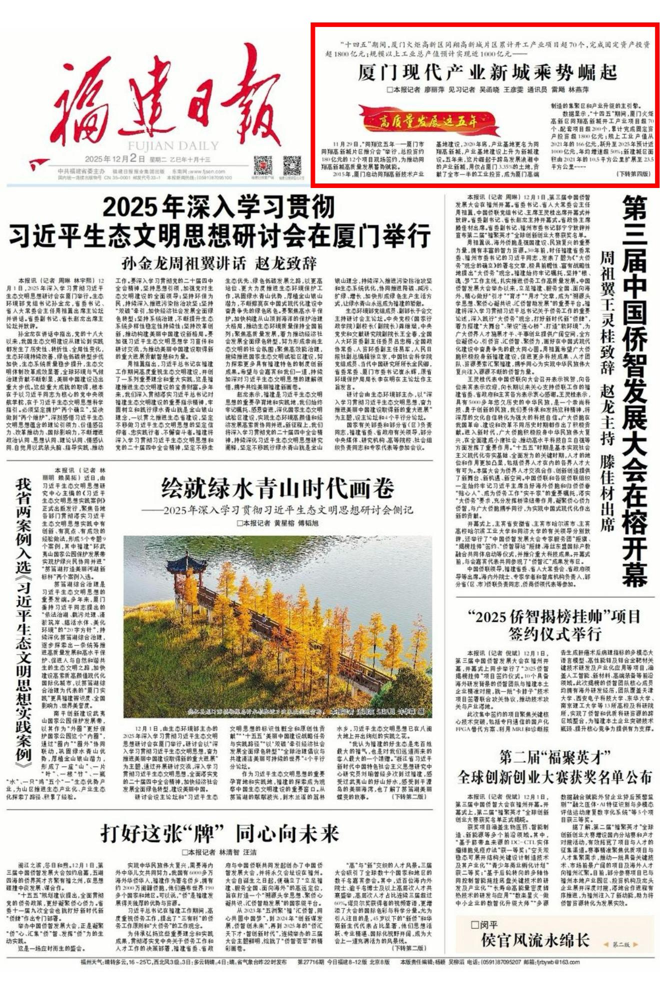 作为厦门火炬高新区“一区多园”、跨岛发展的重要载体,五年来,同翔高新城始终以拓展产业空间、优化产业生态为己任,围绕培育壮大新质生产力,打造链上企业、专精特新企业落地的“理想沃土”。