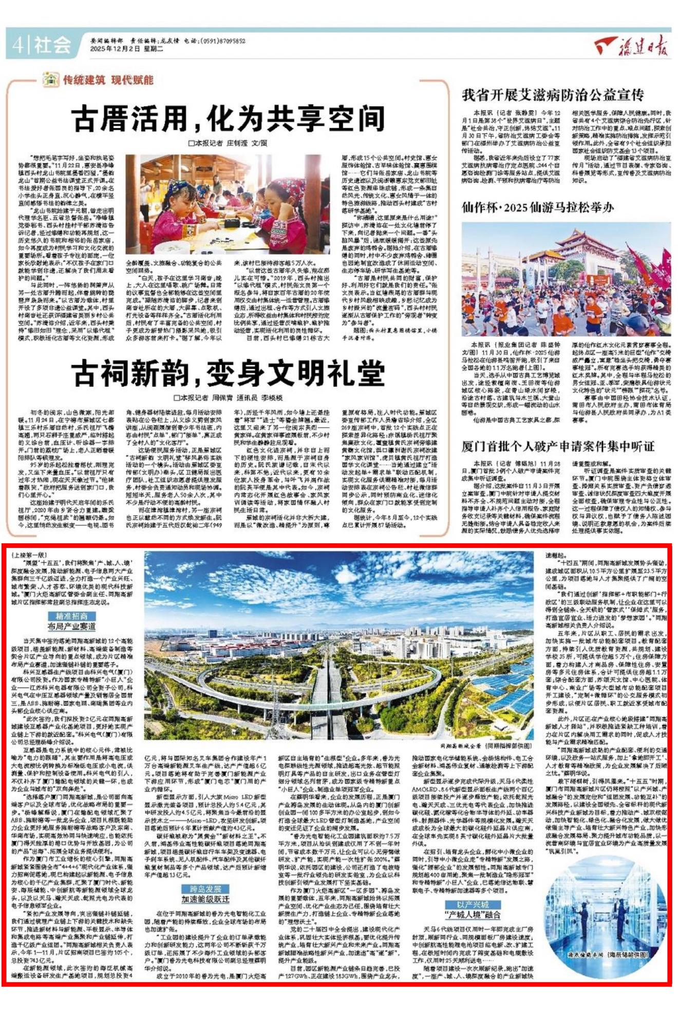 “工业园的建设提升了企业的订单承载能力和创新研发能力,这两年公司不断斩获千万级订单,还拓展了不少海外工业领域的头部客户。”厦门普为光电科技有限公司副总经理蔡明华介绍说。