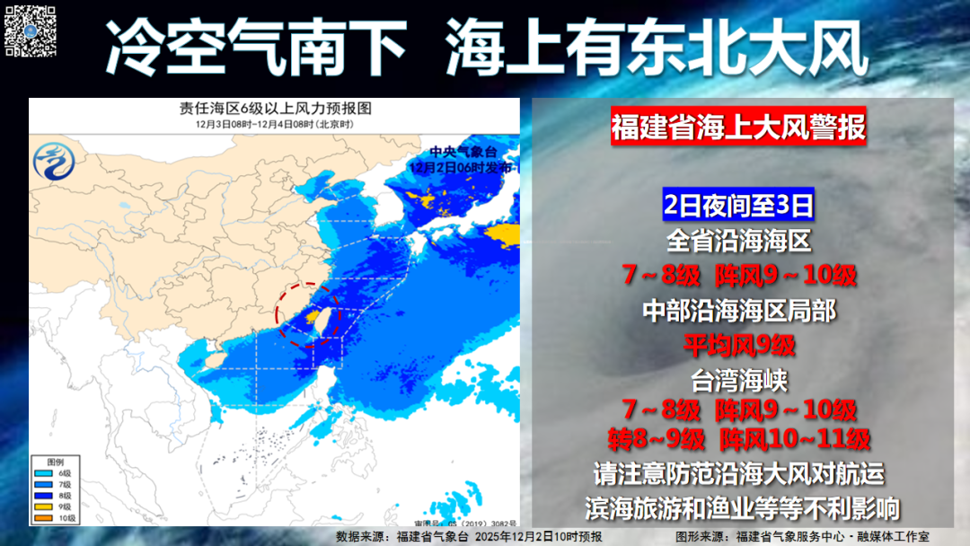 冷空气南下,还会带来强劲的东北大风,福建省气象台继续发布海上大风警报,预计今天夜间至3日,全省沿海7-8级阵风9-10级,其中,中部沿海局部平均风9级,台湾海峡7-8级阵风9-10级转8-9级阵风10-11级。海上航运、滨海旅游和渔业等要注意防范大风的不利影响。