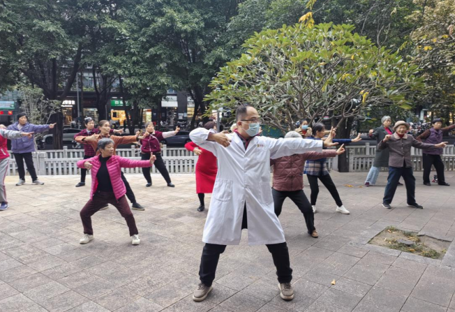 活动开场,由博医汇中医馆志愿者林医生带老人们进行热身。林医生化身“健身教练”,带领老人们练起八段锦养生操。“双手托天理三焦,左右开弓似射雕”医师拆解每个动作的发力要点,指导老人调整呼吸节奏。不少银发发老人表示:“跟着医生练,动作更规范,练完浑身都舒展!”