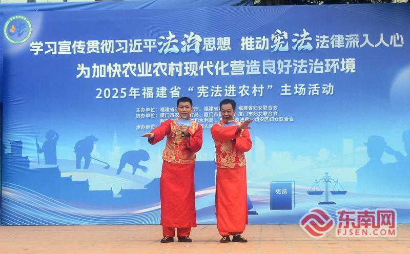3日,福建省2025年“宪法进农村”主场活动在厦门市翔安区内厝镇黄厝村举办。这场由省农业农村厅、省司法厅、妇女联合会联合主办的法治盛宴,将法律知识宣传与闽南传统曲艺节目表演深度融合,通过文艺表演、专题讲座、互动体验等多元化形式,让法治宣传内容更加通俗易懂,让法治精神在田间地头落地生根。