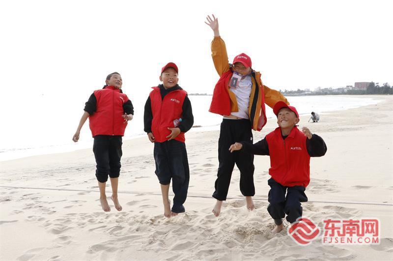 11月27日,在泉州海浪轻涌的崇武海岸,孩子们脱下鞋袜,欢呼着奔向大海——这是许多来自高原的孩子第一次亲眼见到海洋。