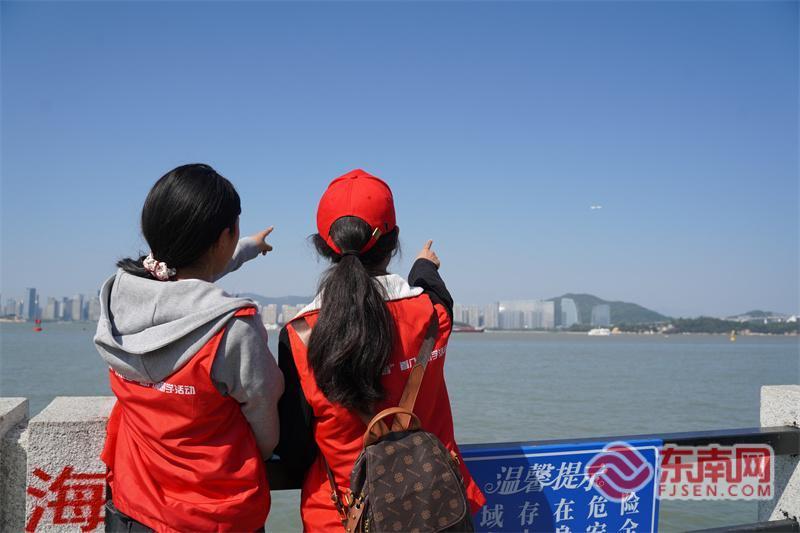 11月22日,厦门黄厝沙滩附近,当飞机划过蔚蓝海面,在小记者们的眼中,第一次盛满了天空与海洋相遇的惊喜。