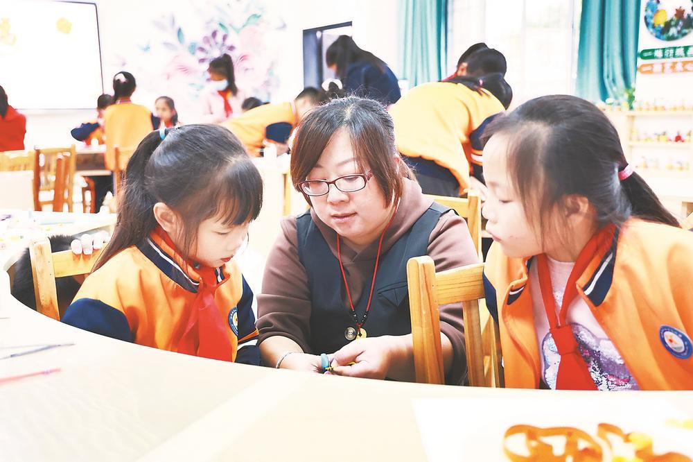 美育工作并非一蹴而就。眼下,彭丽君正在研究如何将华丰中心小学的衍纸工艺、县实验小学的掐丝珐琅工艺、县第二实验小学的竹编工艺这三种传统技艺进行融合创作。“让衍纸与金属丝、竹丝对话,打开孩子的美学视野。”她说。