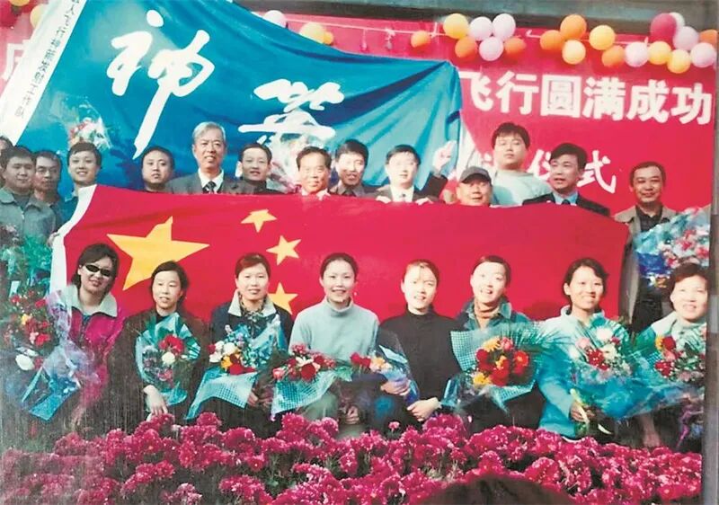 神舟五号发射圆满成功,飞天梦圆,神箭团队合影庆祝。