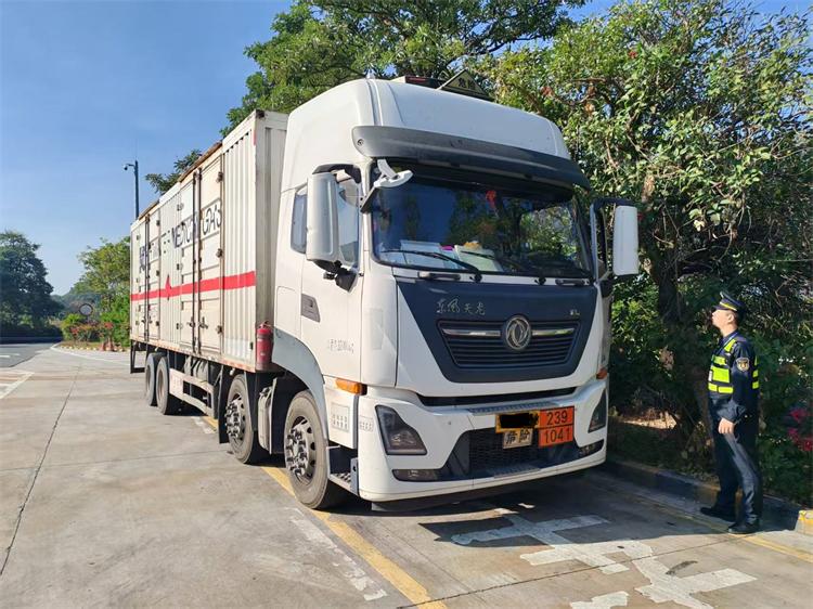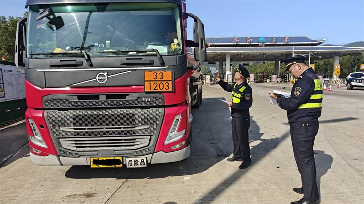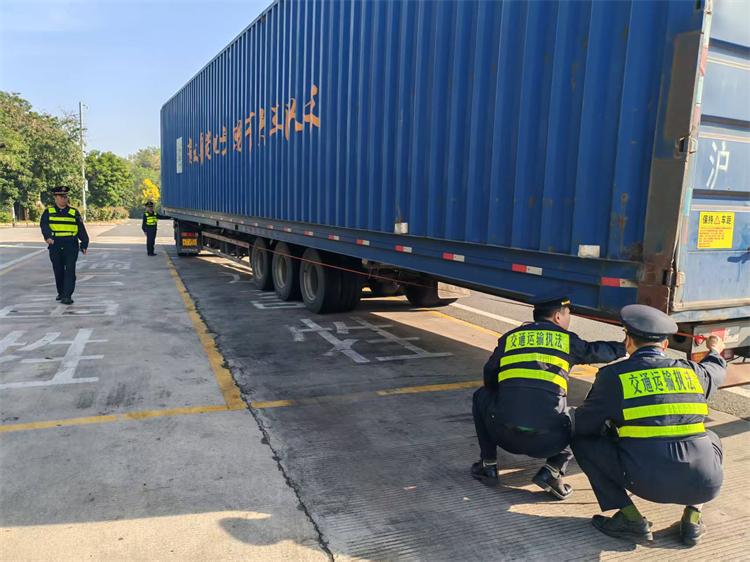 行动前,大队召集执法人员进行统一部署,明确检查重点、职责分工及执法流程。执法人员通过大数据分析辖区近期车流规律、违法高发时段与路段,精准锁定“两客一危一货”等重点车辆,实现“靶向执法”。在检查现场,执法人员规范设置检查布控区域,对过往货运车辆、客运车辆及危险品运输车辆进行全面排查,重点核查车辆营运证、驾驶员从业资格证等相关证件,测量货运车辆外廓尺寸、载重质量等指标,有效遏制影响道路交通安全的各类违法行为。