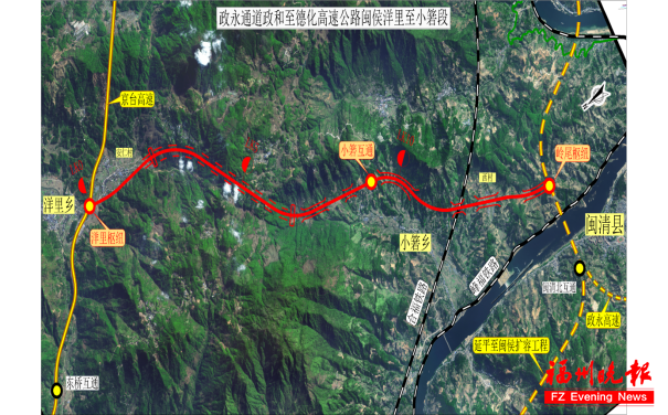 日前,福建省发展和改革委员会发布《关于政永通道政和至德化高速公路闽侯洋里至小箬段工程可行性研究报告的批复》。 记者获悉 政和至德化高速公路闽侯洋里至小箬段 是《福建省国省道公路网规划(2024—2035年)》中 S21政永高速的重要组成部分 由福州左海集团所属交建集团负责推进 总投资估算36.57亿元 建设工期36个月 项目起于闽侯县洋里乡安仁村,设洋里枢纽互通与京台高速公路衔接,经安仁村,建安仁特长隧道至小箬乡,建小箬互通,后以桥梁跨越合福高铁隧道,于西村附近设岭尾互通接拟建延平至闽侯高速公路。全长约16.11公里。设置洋里(枢纽)、小箬、岭尾(枢纽)3处互通式立交。