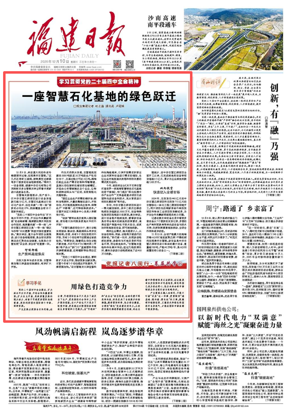 “党的二十届四中全会提出,以碳达峰碳中和为牵引,协同推进降碳、减污、扩绿、增长。绿色已成为发展引领。”福海创公司党委书记、董事长连毅敏对此深有感触。前不久,该公司获得福建省化工行业首张“碳中和管理体系”认证证书,实现主要产品全链条碳管理。
