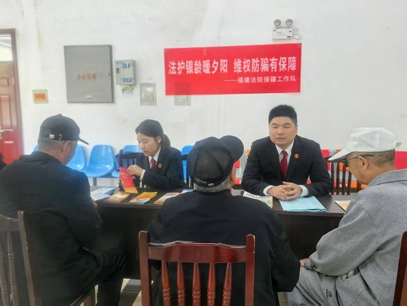 福建法院援疆工作队为当地各族群众普及维权防骗知识。
