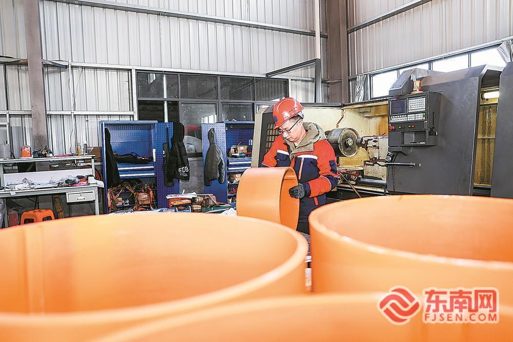 8日,在三明市建宁经济开发区福建奥晟科技有限公司生产车间内,工人正加紧组装新型包装、矿山机械配件。