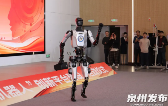 人形机器人展示自主行走、姿态调整等能力。来源:泉州发布
