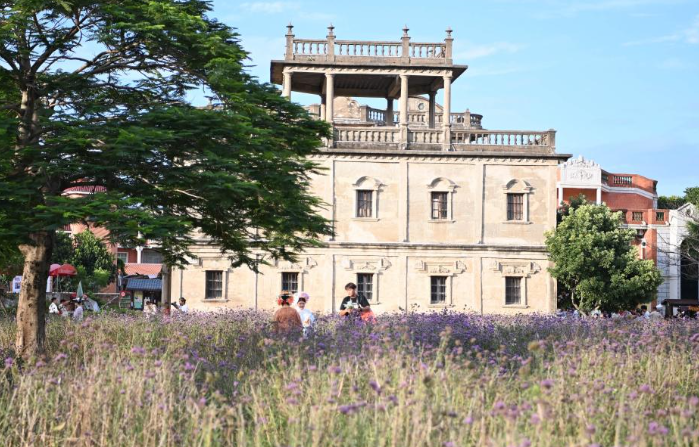 游客在福建晋江梧林村体验旅拍。新华社记者 林善传 摄