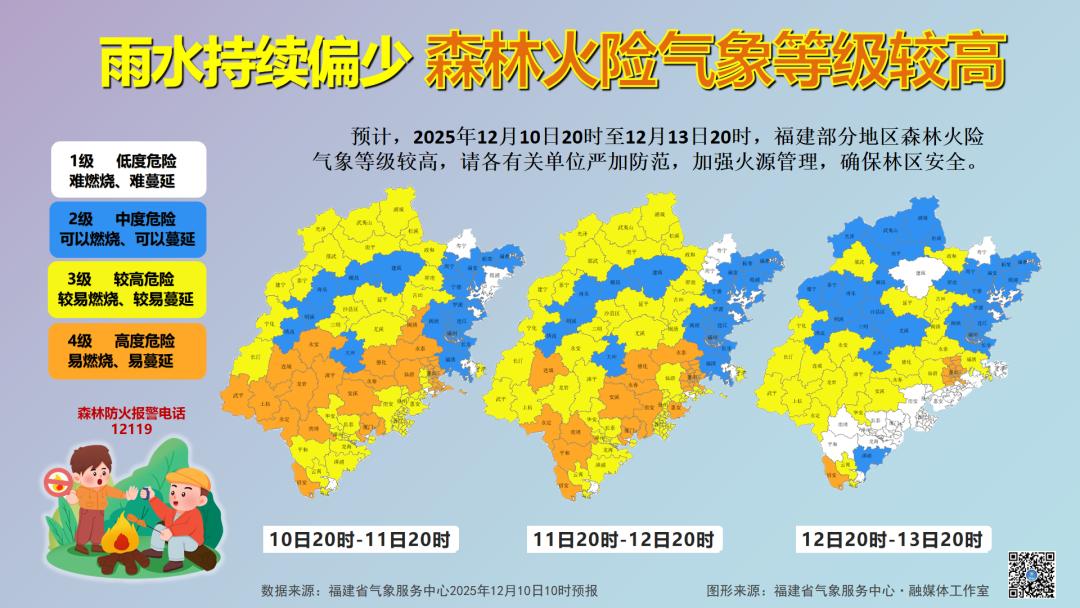 此外,由于近期降水持续偏少,福建部分地区森林火险气象等级持续较高,请注意野外用火安全。生活中也要多补水润燥,注意用火用电安全,防患于“未燃”。