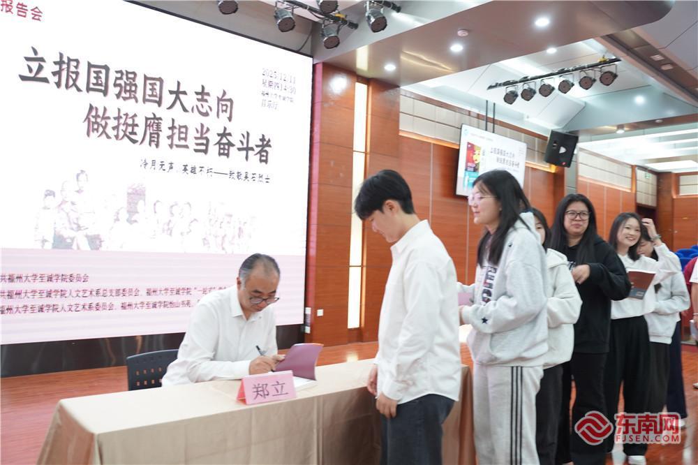 现场签名环节,师生们排起长队。“追完剧再听郑老师的讲座,很多剧情里没有的细节,让吴石将军的形象在我心中更立体、更鲜活了。”福州大学至诚学院学生林彦兵难掩激动。学生赖子馨表示:“获得这本书对自己而言更是一种精神指引,这让我更加坚定了去西部支教的决心,要像吴石将军一样,为祖国的事业奉献青春力量。”