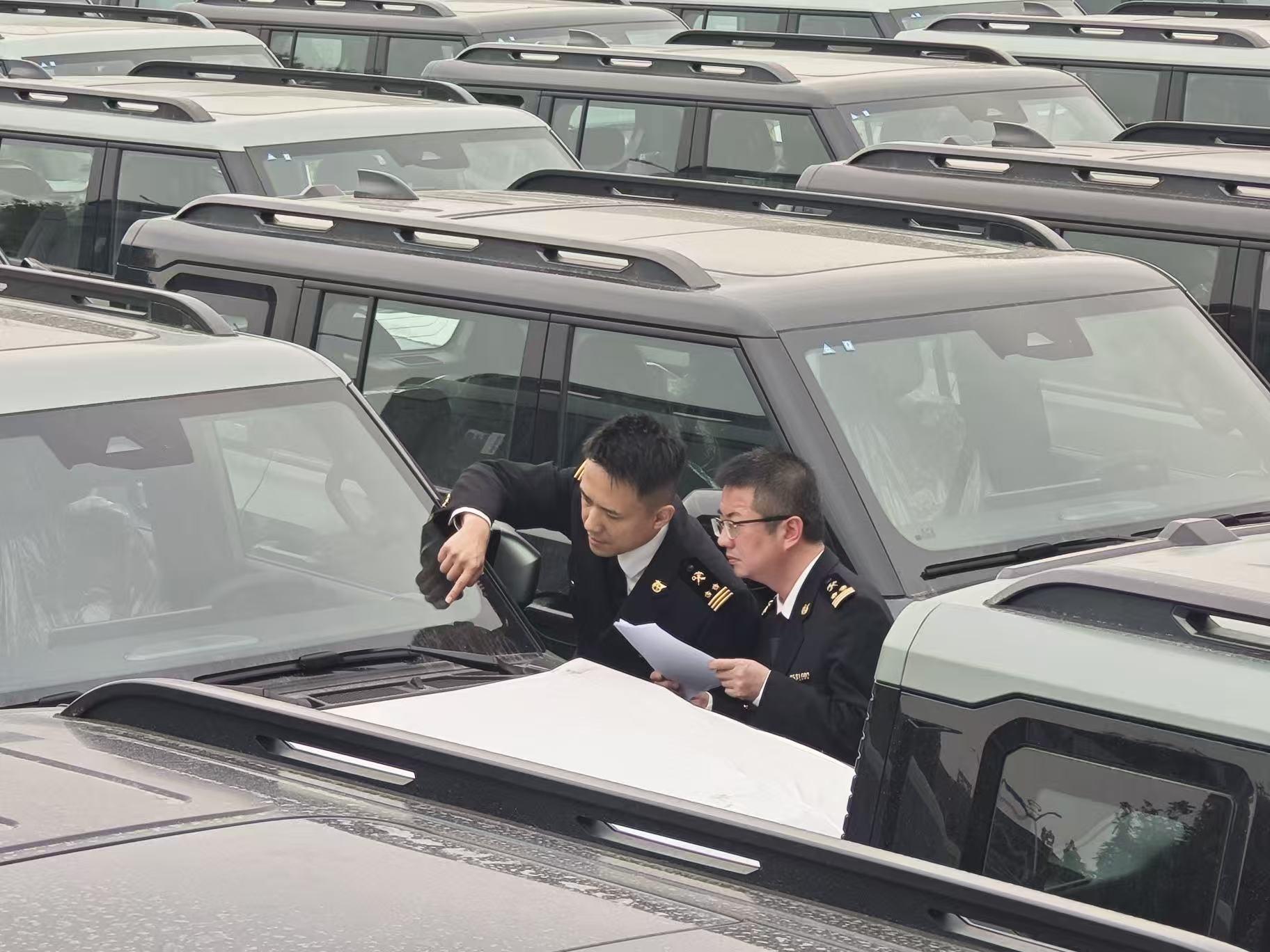 福州海关所属马尾海关关员在福州综合保税区对出口国产汽车开展现场监管。 王丽 陈嘉晓 供图