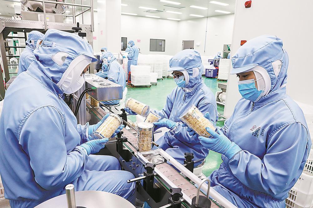 在淑先(福建)健康食品有限公司的现代化工厂内,智能化生产线高效运转,经过预处理、炖煮、灌装、灭菌等工序的鲜炖银耳在输送线上平稳流转。