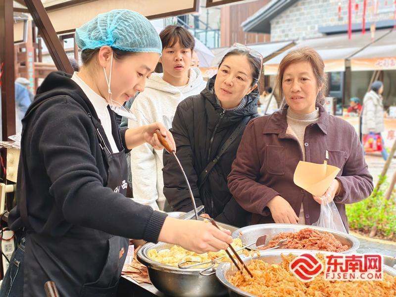 建阳灯盏糕摊位前已有不少游客排队购买。张梦媛/摄