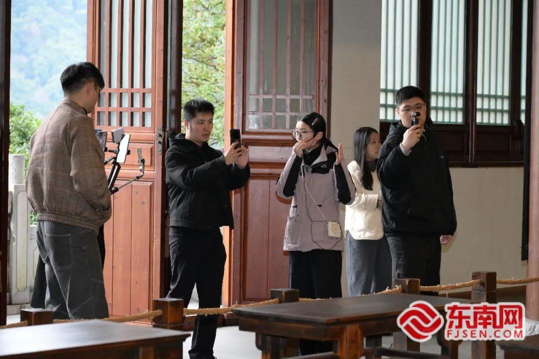 寒泉精舍里,儒风浩荡。作为理学大家朱熹创办的第一所书院,这里是他隐居守孝、著述讲学的重要场所,传世经典《近思录》便在此诞生。主播们踏入古朴的书院,触摸着斑驳的梁柱,仿佛能与朱熹进行一场跨越千年的对话。