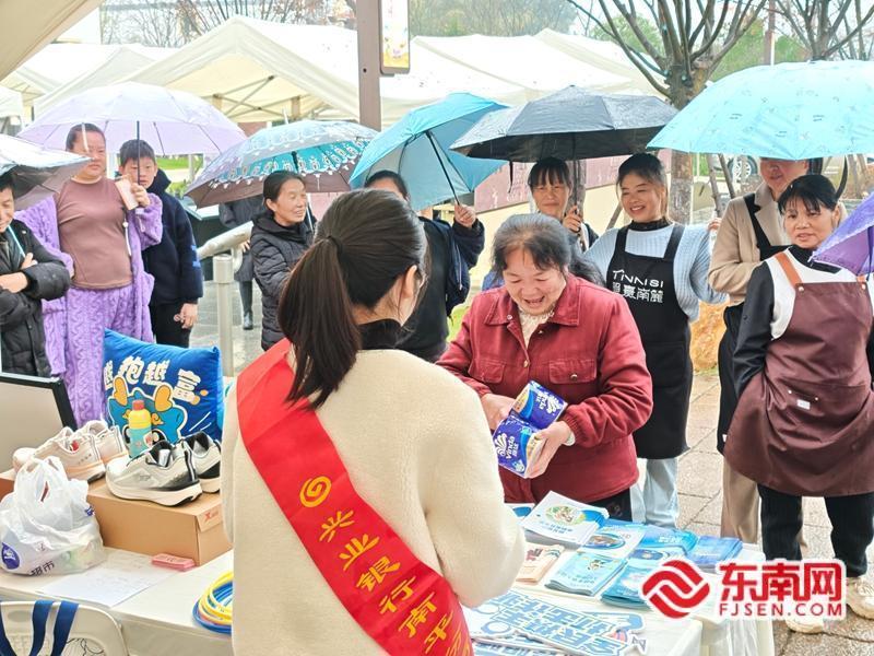 兴业银行展位前,村民积极参与消保互动游戏。傅心婕/摄