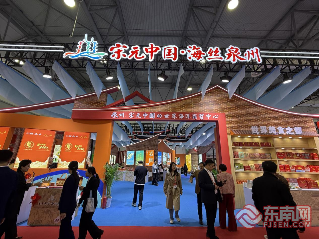 在这里,传统与未来相遇,雅韵与烟火共存。泉州"茶瓷香"展区里,德化白瓷莹润如玉,安溪茶香袅袅沁人,南音婉转、木偶灵动,吸引游人驻足流连、拍照不绝。文旅新质生产力展区则充满科技感,AI机器人机智互动引得亲子家庭沉浸其中。最抚凡人心的莫过于闽台非遗美食区,数百个摊位汇聚四百余种两岸风味,香气弥漫,令人舌尖沉醉。从非遗雅艺到数字科技,从地道美食到跨界装备,每一个展区都在讲述"文旅+"的无限可能,共同构筑了一个个好看、好玩、好味的文旅消费新场景。