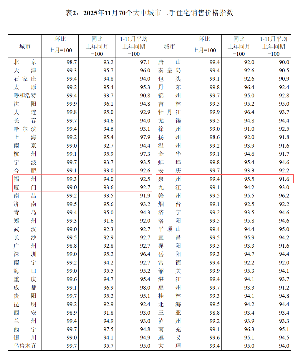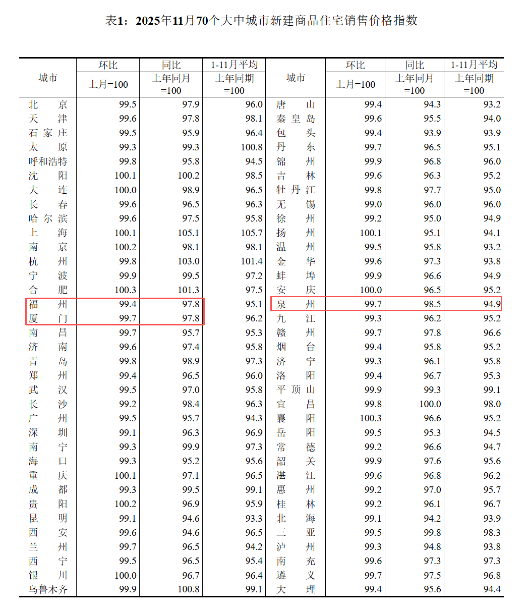 国家统计局12月15日公布数据显示,2025年11月份,70个大中城市商品住宅销售价格环比总体下降、同比降幅扩大。