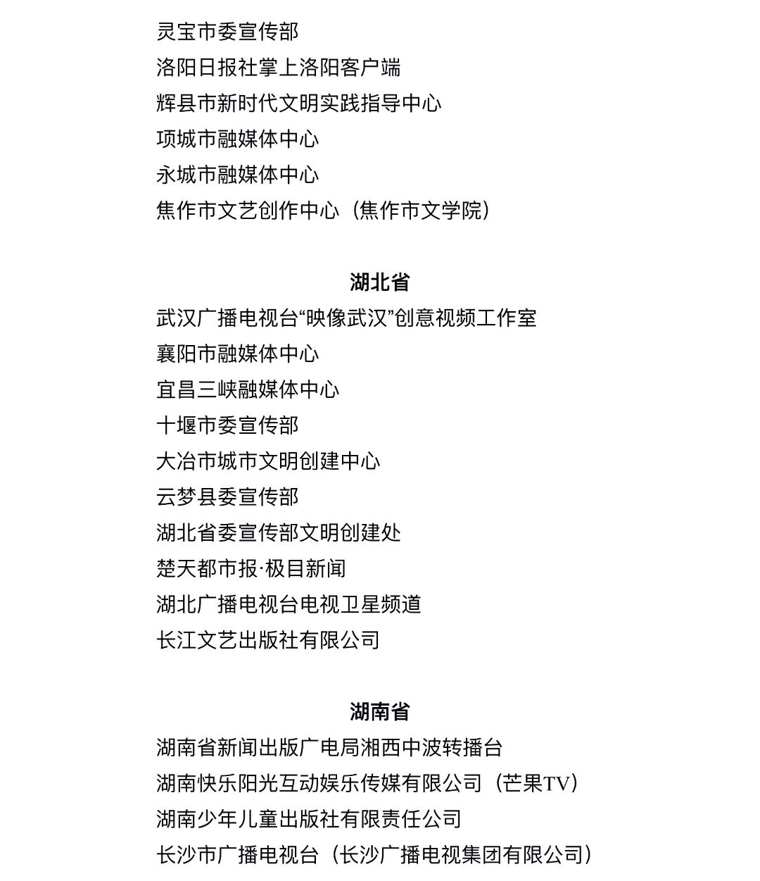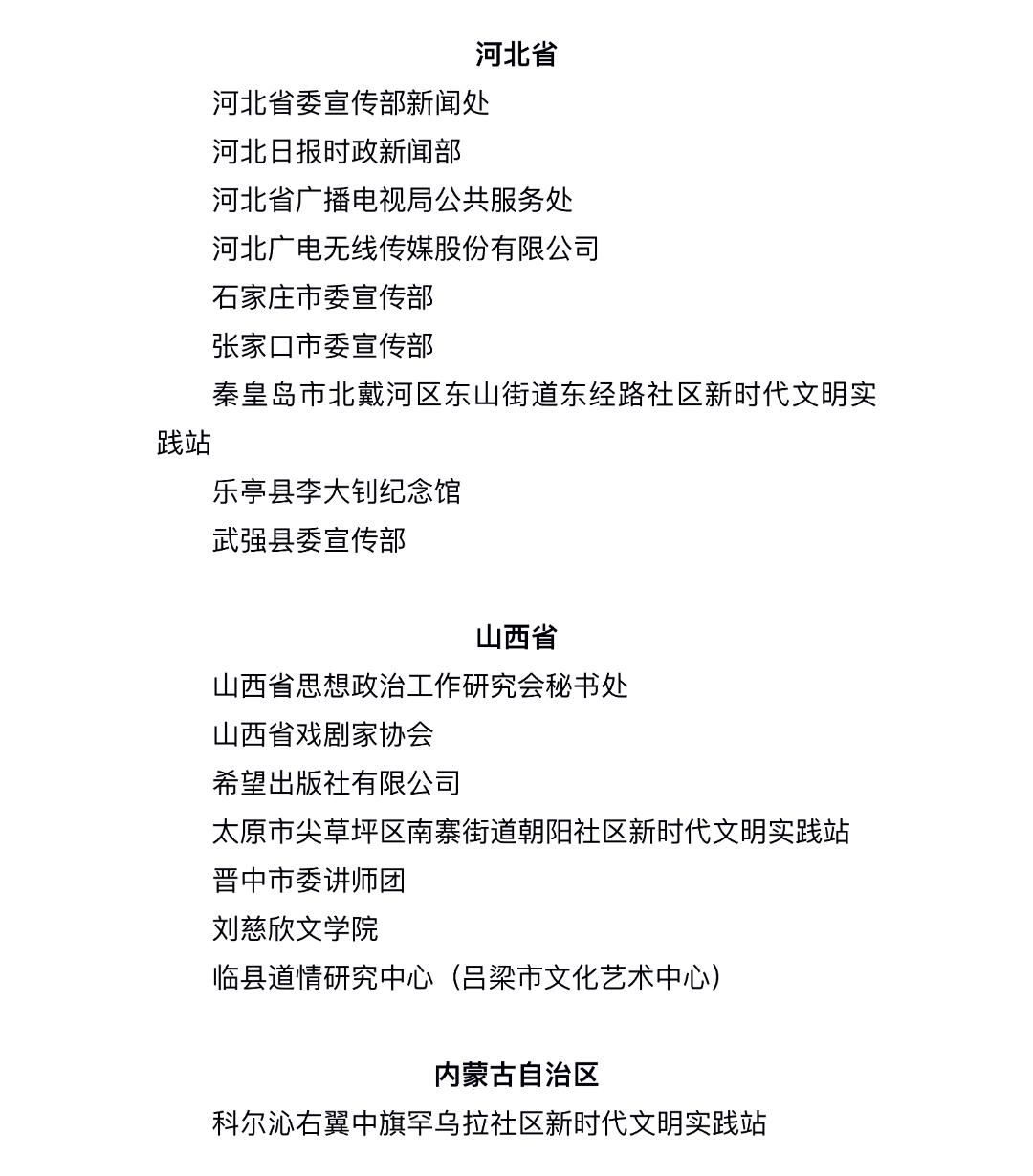 全国宣传系统先进集体拟表彰对象