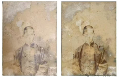 近日,河南省档案馆新鉴别出一份吴石烈士的早期工作履历表,其中包括他在京汉铁路管理局工作时期珍贵照片。 由于距今已超百年,这张4.5cm×6.1cm的黑白照片出现乳剂层粘连、脱落、缺失、模糊、霉斑、污渍等病害。 12月16日,河南省档案馆发布消息称,完成了对珍贵照片的修复保护。吴石烈士眼神、表情、衣服、衣扣等细节得以还原,其青年时期的坚定刚毅形象得以重现。