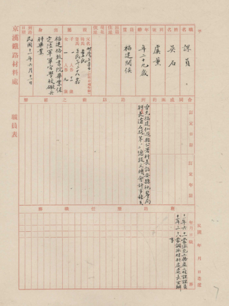左图为修复前,右图为修复后 这份题名为“中华国有京汉铁路管理局吴石履历表”的档案显示,1922年至1924年间,吴石烈士曾在京汉铁路管理局工作。他出生于1894年,填写表格时(1923年)为29周岁。 该履历表为研究吴石烈士生平提供了珍贵的一手史料,并且含有他在京汉铁路管理局工作时期的珍贵照片。然而,由于年代久远,照片出现病害,严重影响人像信息的完整呈现与传承利用。