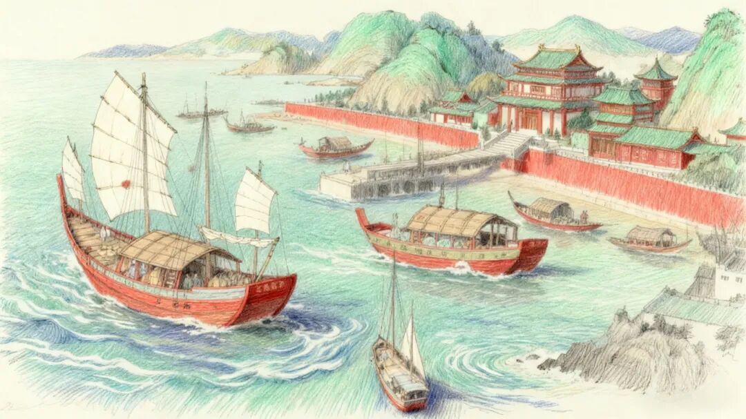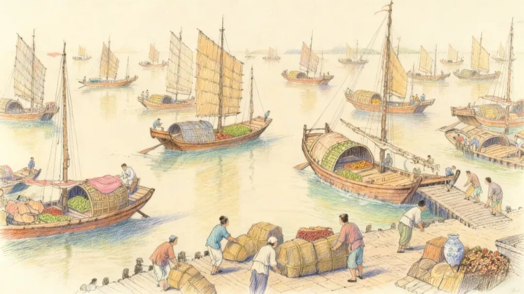 林銮渡繁荣的对外贸易场景(AI制图)