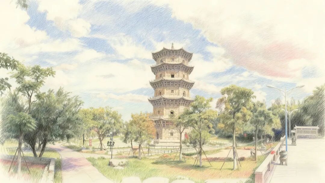 林銮渡不远处的六胜塔(AI制图)