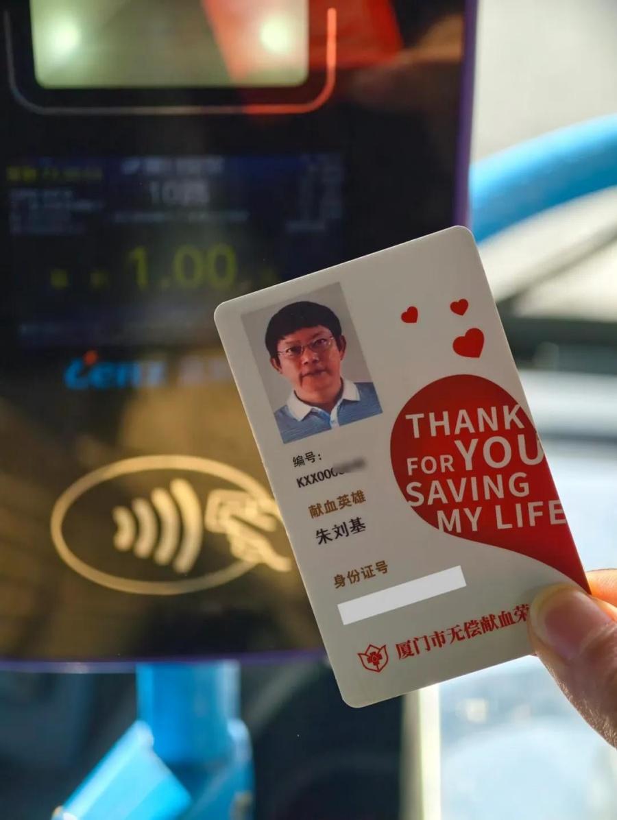 持有厦门市无偿献血荣誉卡的市民乘坐公交时,刷卡就会播报“献血英雄”。图源:厦门日报