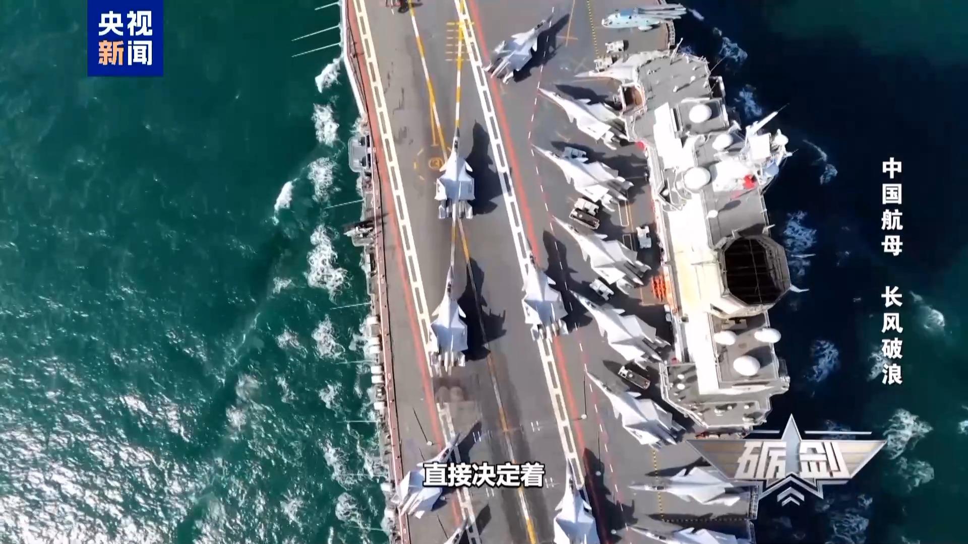 军事评论员 曹卫东:在舰艏的方向增加一个仰角,比如说10度到13度之间,那么飞机在原来的重量上可以增加15%的油料或者是弹药。增加了仰角之后就可以增加它的作战的半径,可以使它战斗能力更强。