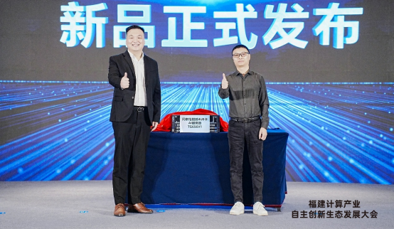 在新品发布环节,同泰怡信息技术(福建)有限公司产品中心总经理马泽与华为福建政企伙伴与商业销售部总经理牛永健共同登台,见证了同泰怡鲲鹏4U8卡AI服务器TG656V1新品发布。该新品的亮相,为福建乃至更广阔市场的智能化转型提供了强大、可靠的算力硬件选择,是自主创新技术在产业端落地的重要体现。