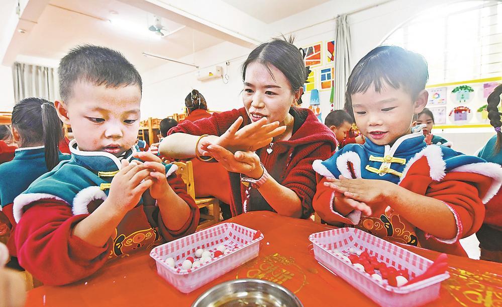 在闽南地区,民间有冬至吃“冬至丸”“冬节圆”的习俗,寓意着团圆、圆满,也有祈求来年添岁纳福的美好愿望。冬至将至,泉港区后龙中心幼儿园小朋友19日在老师指导下共同搓制“冬节圆”,习民俗于快乐之中。