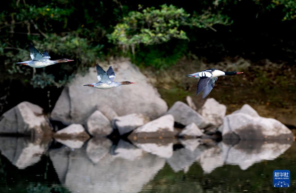 中华秋沙鸭是我国独有的珍稀鸟类,属国家一级重点保护野生动物,享有鸟类“活化石”美誉。随着福建省福州市生态保护成效日益显著,这一珍贵鸟类成为“常客”,连续多年来大樟溪流域越冬。