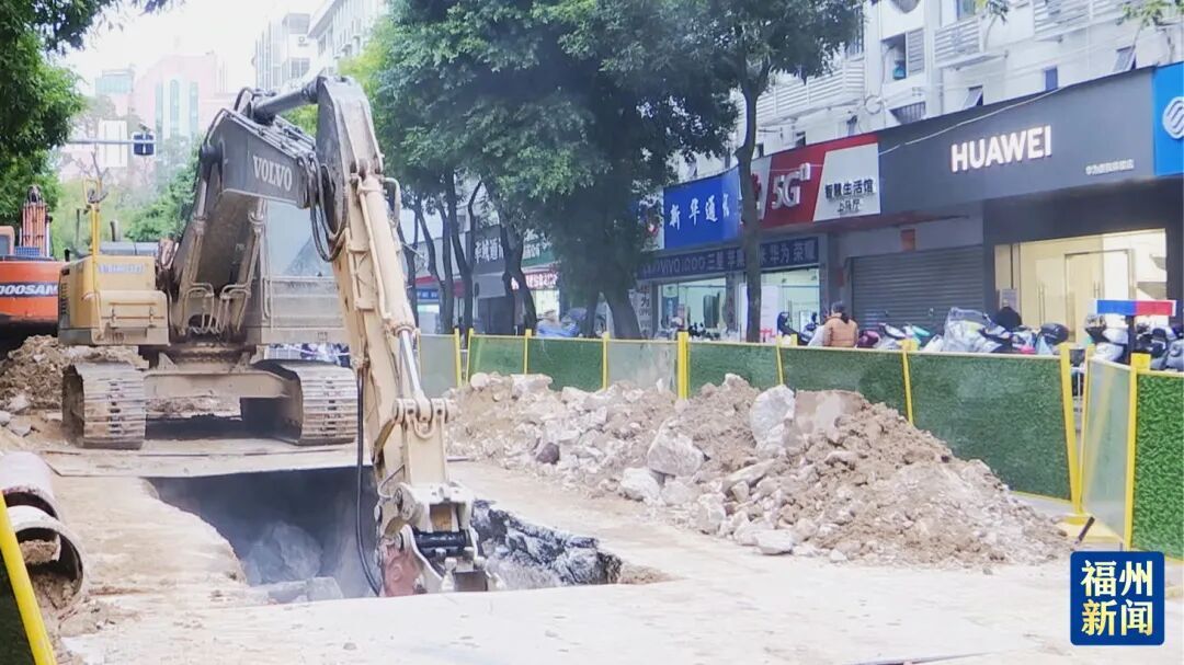 三明市区江滨路正在进行管网连接施工