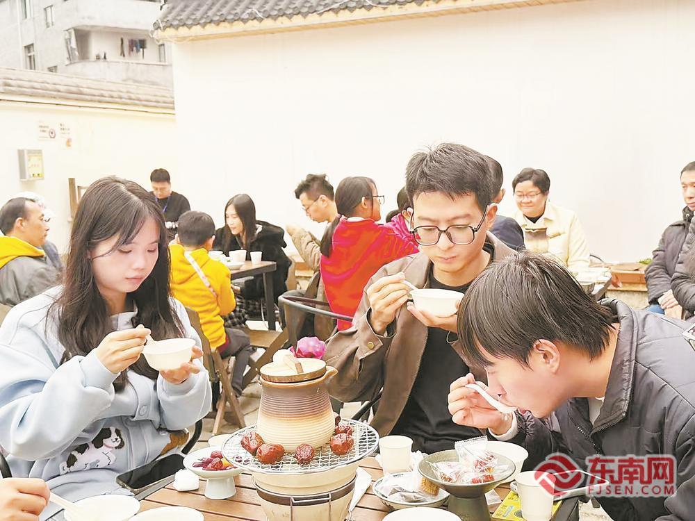 这场由福州团市委主办的活动,是福州今年建设“海峡青年发展型城市”第二批举措中关于开展台湾青年创业“扶摇计划”的具体行动。当天,榕台青年走进闽清县三溪乡溪源村、梅城印记历史文化街区等地,一边品汤圆感受冬至传统文化特色(如图),一边分享创业感悟、畅谈未来。