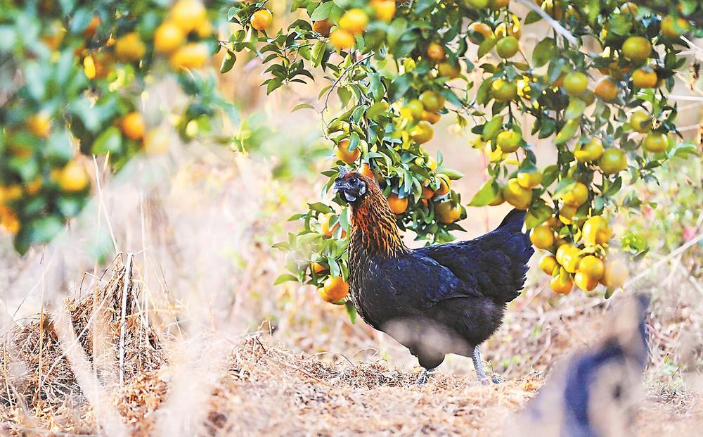 砂糖橘园中散养的乌鸡 黄钊伟 摄