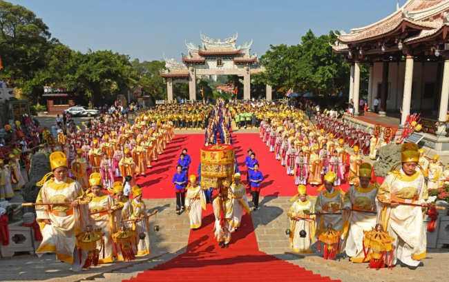 在妈祖羽化升天周年纪念日,还会有气势恢宏的妈祖金身巡游。在鼓乐喧天的热烈氛围中,妈祖金身从湄洲岛祭祀中心的妈祖祖庙起驾,绕境巡安。