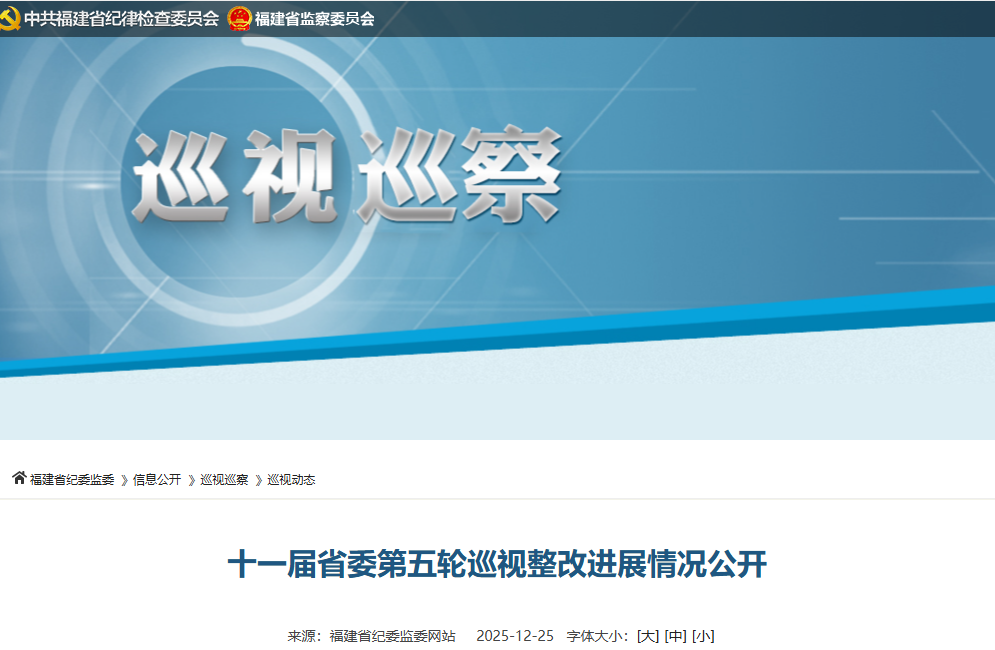 根据省委统一部署,2024年8月至12月,省委10个巡视组对漳州市、泉州市(泉州台商投资区管理委员会)、莆田市、南平市、龙岩市、宁德市等6个设区市,以及福州市晋安区、马尾区(福州经济技术开发区管理委员会)、长乐区、福清市,厦门市思明区、湖里区、集美区、同安区,漳州市芗城区、漳浦县、东山县,泉州市鲤城区、丰泽区、洛江区、南安市、永春县,三明市三元区、沙县区、清流县、泰宁县、尤溪县,莆田市涵江区,南平市建阳区、邵武市、武夷山市、光泽县、松溪县、政和县,龙岩市永定区、上杭县、漳平市,宁德市蕉城区、福安市、寿宁县等34个县(市、区),共40个地方开展了巡视。2025年2月,省委巡视组向被巡视党组织反馈了巡视意见。截至2025年8月,十一届省委第五轮巡视的党组织完成为期6个月集中整改。根据《中国共产党巡视工作条例》有关整改情况公开的规定,省纪委监委网站公布十一届省委第五轮巡视整改情况。