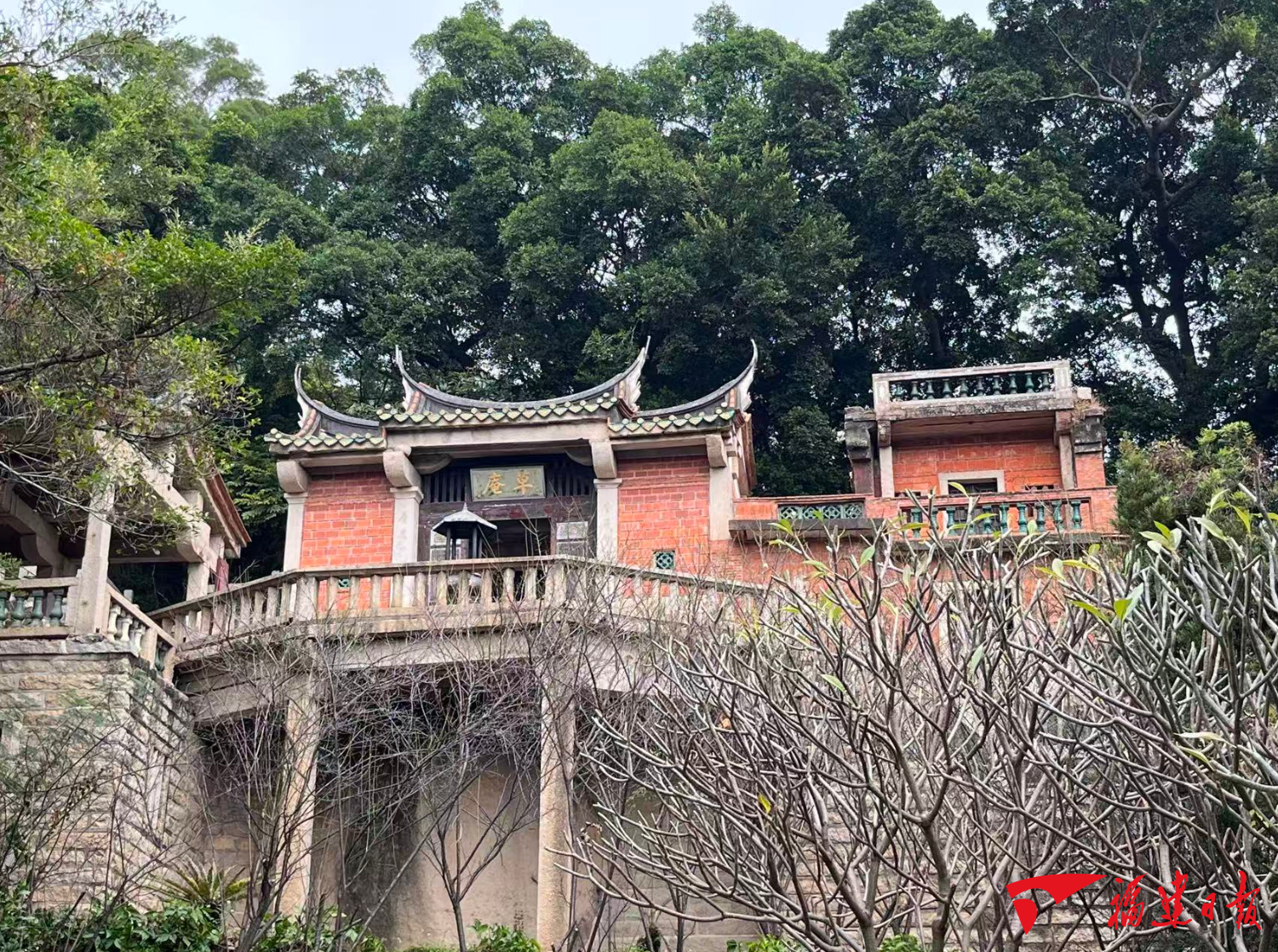 临近冬至,寒风阵阵,但晋江华表山南麓依然绿意盈盈,全国重点文物保护单位草庵寺便坐落于此。