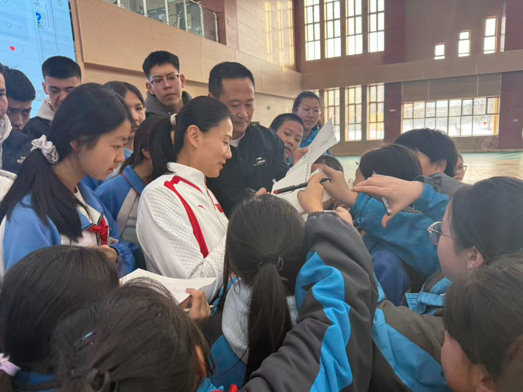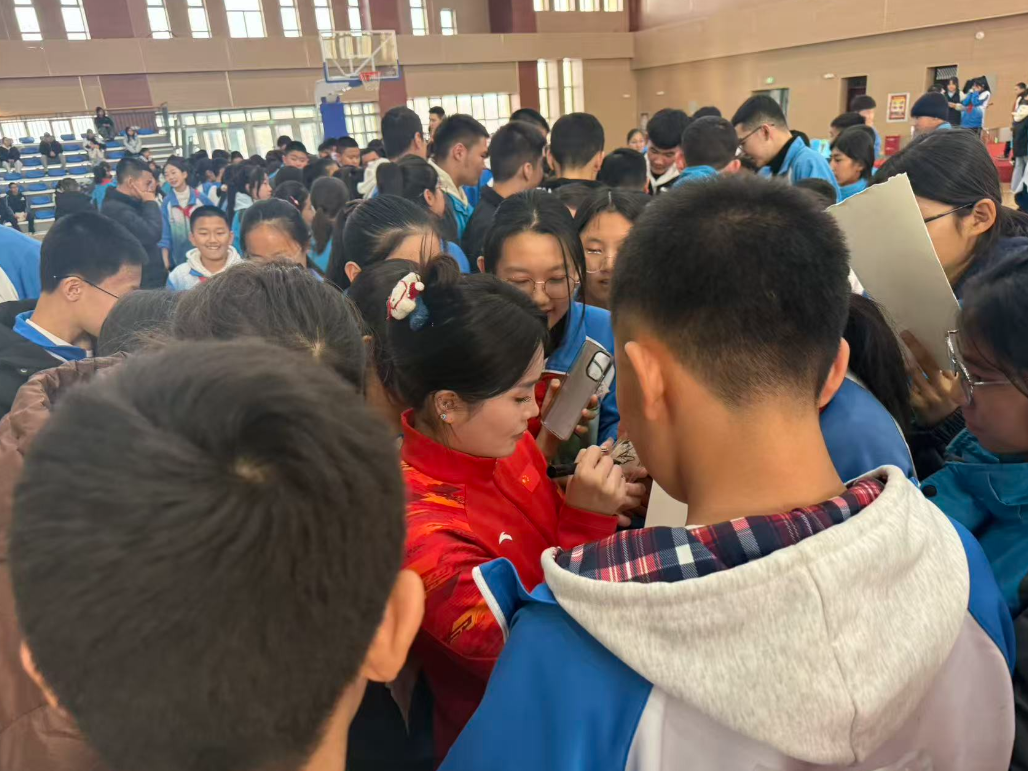 活动在木垒县中学拉开帷幕。在宣讲环节,沙滩排球冠军薛晨以“团队中的攻防之道”为主题,分享了她与队友在赛场内外默契协作、共克难关的经历。体操冠军姚金男围绕“把简单的事做到极致”展开讲述,回顾了自己如何通过千万次重复训练,追求技术动作的毫米级精准,甚至在伤病中坚守梦想的历程。