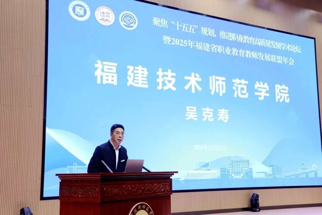 东南网12月29日报道(本网记者 张立庆)12月27日,推进职业教育高质量发展学术论坛暨2025年福建省职业教育教师发展联盟年会在福建技术师范学院召开。本次活动紧扣“十五五”规划建议,汇聚业内专家学者与院校代表,围绕产教融合、普职融通、“三全育人”等核心议题深入研讨,为福建特色现代职业教育体系构建、服务新质生产力发展凝聚智慧与共识。